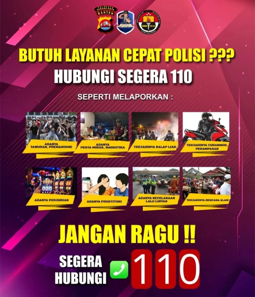 SERANG, trotoar post – Polresta Serang Kota melayani, melindungi dana mengayomi masyarakat, silahkan masyarakat menghubungi layanan cepat Polisi 110. Seperti melaporkan, adanya perjudian, tawuran, balap liar, aksi premanisme, pencurian kendaraa...
